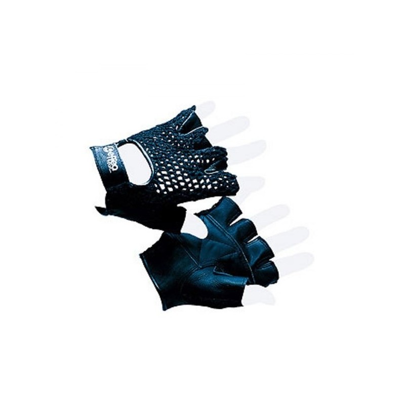 Guanto da palestra con dorso in rete e palmo in pelle.