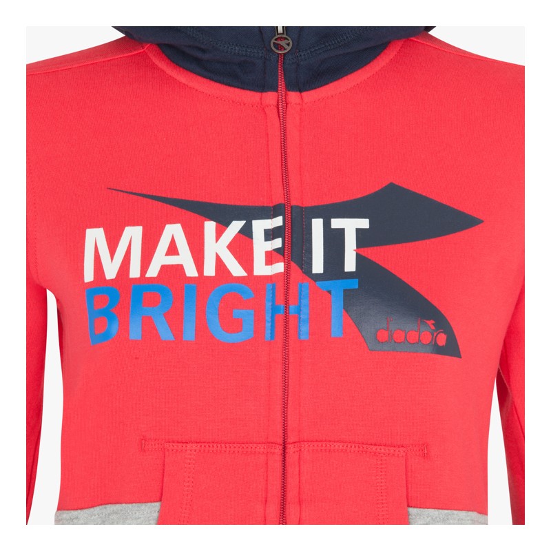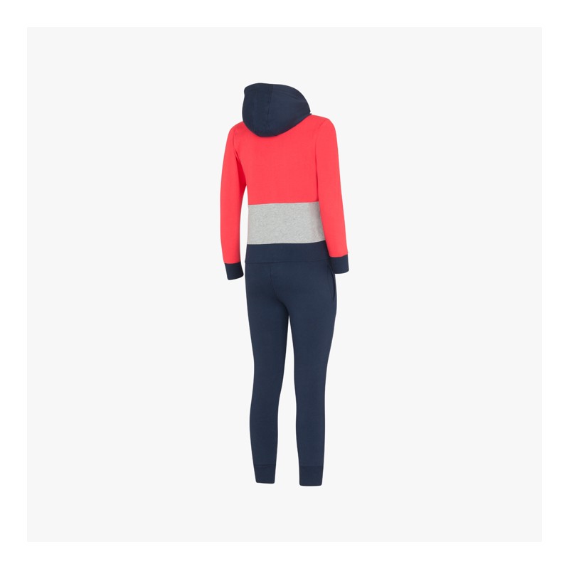 tuta in cotone 100%. La giacca con cappuccio , con la leggera sagomatura sui fianchi dona una vestibilità slim e senza antiestetiche pieghe.